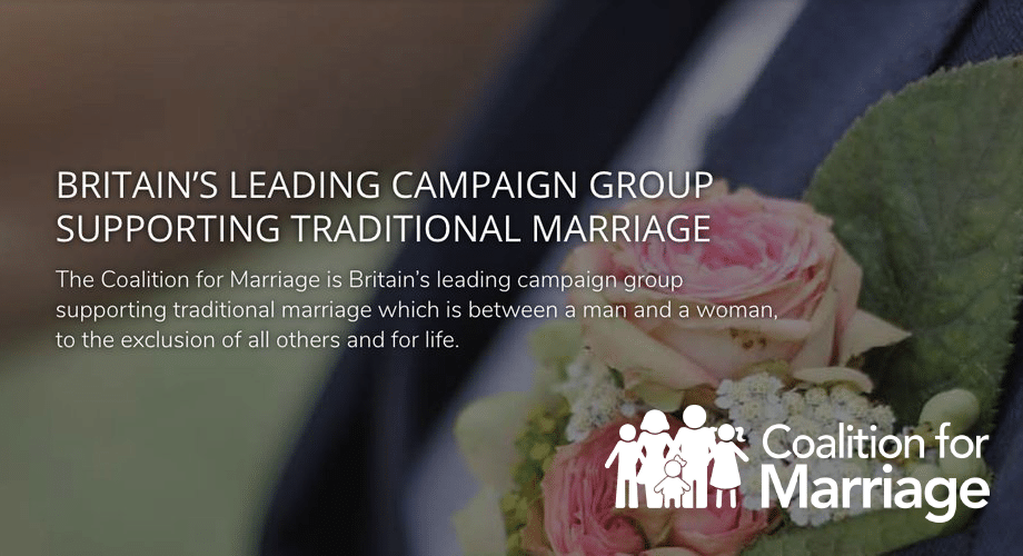 - Post: Coalition for Marriage, 8 Marshalsea Road, London, SE1 1HL